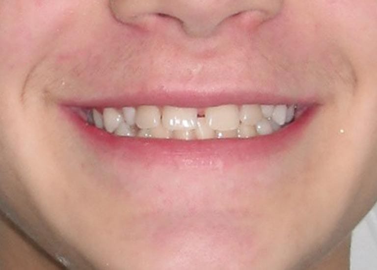 عانى هذا الشاب الصغير من وجود مسافة كبيرة بين الاسنان الامامية، تسبب له الإحراج عند الابتسام بين زملاءه تم اغلاقها بواسطة تقويم الأسنان ، و في النهاية حصل صديقنا الشاب على ابتسامته الرائعة التي يتباهى بها بين زملاءه