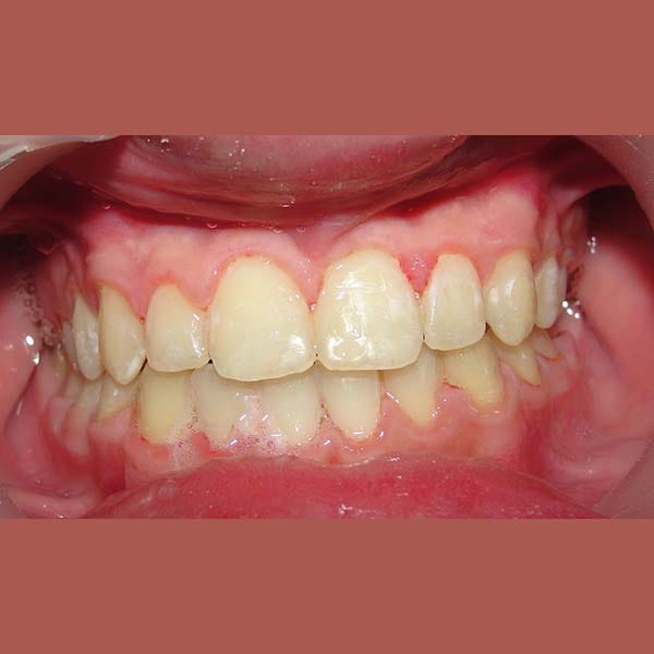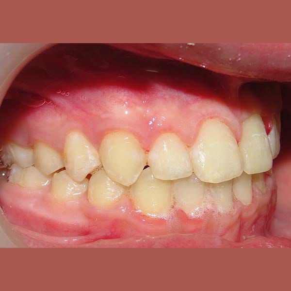 بعد الفحص، شخص الدكتور خالد الكاتب الحالة على أنها عضة معكوسة أمامية، حيث كانت أسنانه العلوية الأمامية تطبق خلف أسنانه السفلية. لحسن الحظ، راجعنا المريض في وقت مثالي قبل انتهاء فترة النمو، مما سهل العلاج بشكل كبير. تم تركيب تقويم الأسنان لمدة 18 شهراً، وتم خلالها إعادة وضع الأسنان الأمامية في مكانها الصحيح.