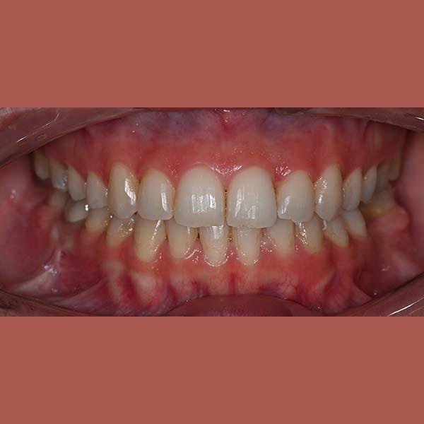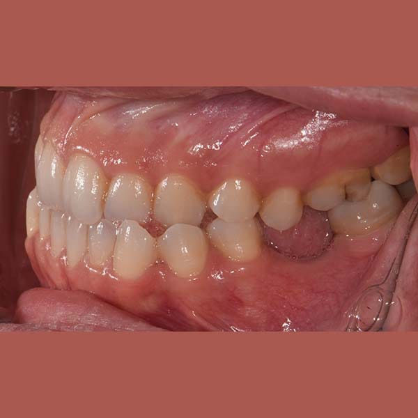 عانت هذه الشابة من بروز واضح في الذقن ناتج عن تقدم الفك السفلي، مما أثر على تناسق وجهها وسبب لها عضة معكوسة أمامية.