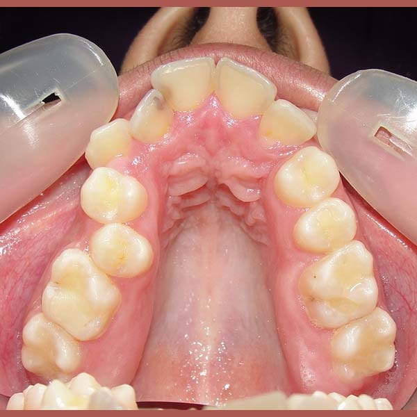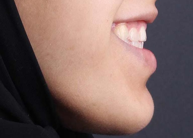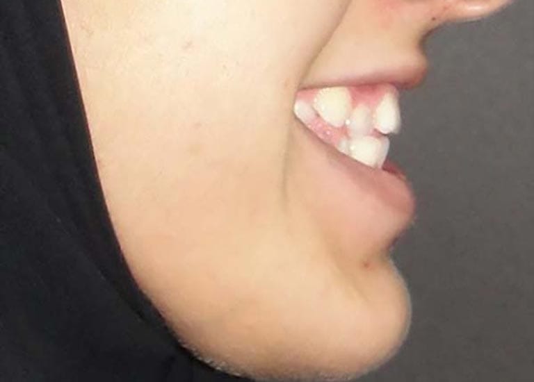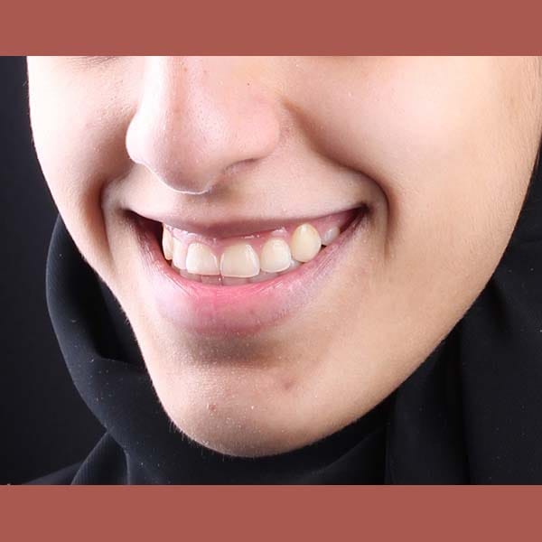 عانت هذه الشابة الصغيرة من تراكب شديد جداً في الأسنان وتضيق شديد في الفك العلوي. تمت معالجتها تقويمياً بالإضافة لقلع أسنان في الفكين وتوسيع الفك العلوي. في النهاية، بات بإمكان صديقتنا أن تبتسم بثقة مجدداً