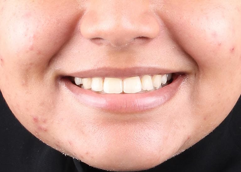 كما تظهر الصور، تم تصحيح البروز المضاعف بشكل كامل. تراجعت الأسنان الأمامية في كلا الفكين إلى وضعها المثالي، مما أدى إلى تحسين كبير في المظهر الجانبي للوجه وابتسامة أكثر جمالاً وتوازناً. في النهاية، بات بإمكان مراجعتنا الابتسام بثقة مجدداً.