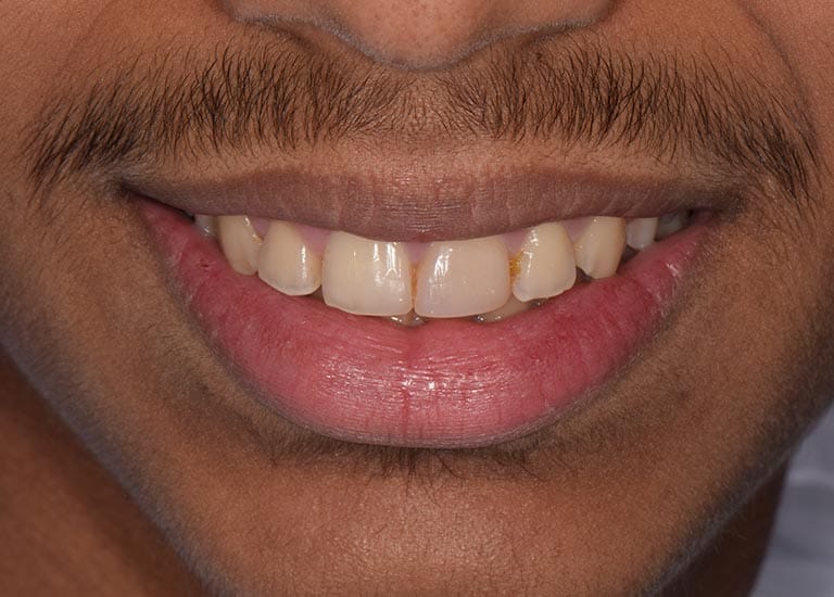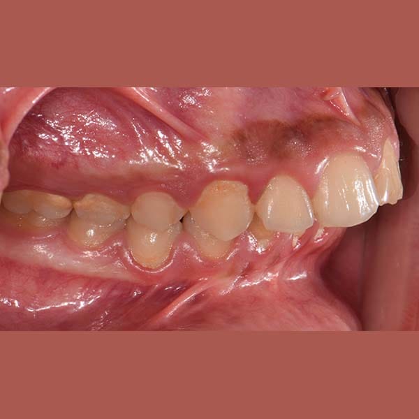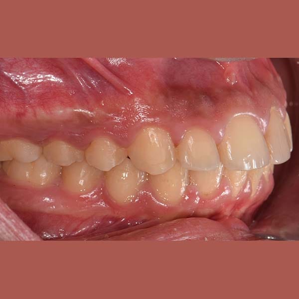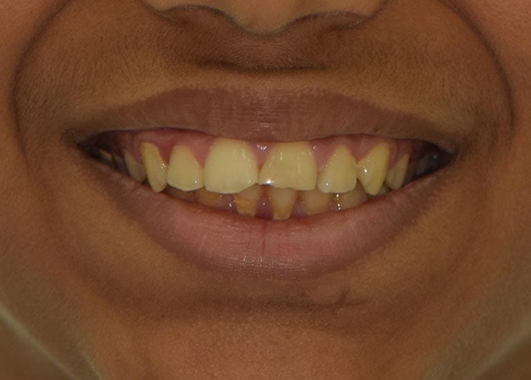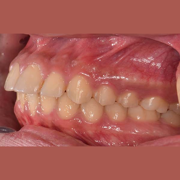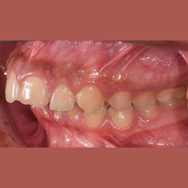 عانى هذا الشاب اليافع من بروز في الأسنان الأمامية العلوية و تراجع في الفك السفلي ، أدى لعدم قدرته على قطع الطعام بشكل جيد ، بالإضافة لخجله من الإبتسام أمام أصدقاءه في المدرسة. تم معالجة هذه الحالة من دون قلع أسنان بواسطة تقويم ثابت بالإضافة لتقويم وظيفي ثابت ساعد على توجيه نمو الفك السفلي للأمام و تصحيح المشكلة التي كان يعاني منها، و أصبح بإمكان صديقنا الإبتسام بثقة و أكل ما لذ وطاب من دون مشاكل.