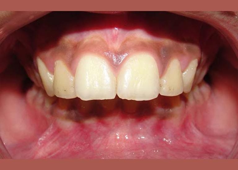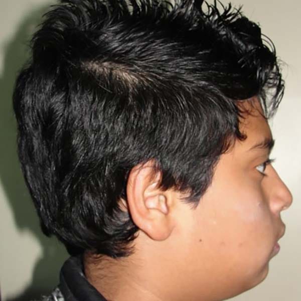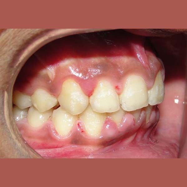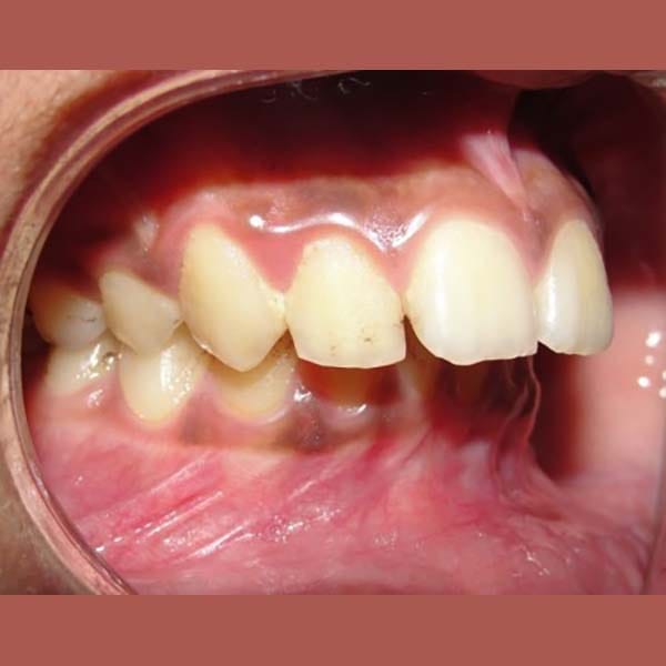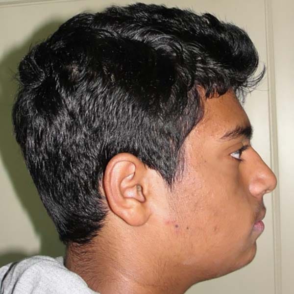 عانى هذا الشاب اليافع من بروز شديد (1 سم) في الأسنان بسبب تراجع الفك السفلي ، و يظهر هذا الأمر بشكل واضح على بروفيل الشاب الجانبي، تم معالجته بواسطة التقويم الوظيفي المتحرك ، حيث عمل على توجيه نمو الفك السفلي و تحريضه للأمام، مما صحح البروز بشكل كامل وبعدها تم استخدام جهاز تقويمي ثابت للوصول إلى الابتسامة و الاطباق المثاليين