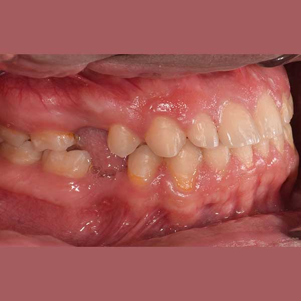 Our friend’s case was treated with fixed braces, closing the frontal spaces and returning them to their original position. In the second stage, it was agreed to implant the missing back teeth.