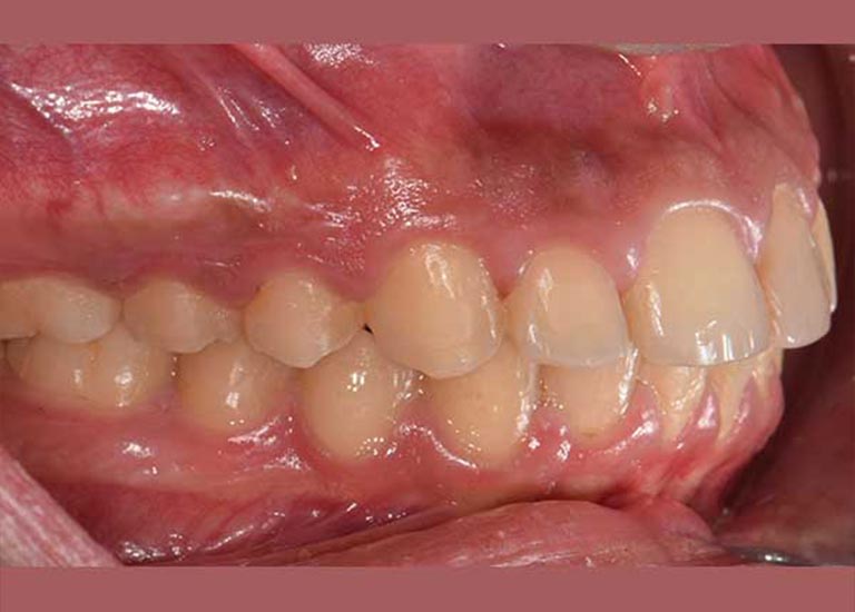 The condition was treated by fixed orthodontics and a functional device that serves to advance the lower teeth and the bearing bone forward and stimulate the advancement of the lower jaw forward and Put the upper teeth back.