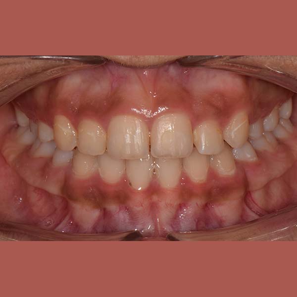 Treatment required extracting a permanent tooth in order to open room for aligning the rest of the teeth, and a special device was used to move the lower jaw forward to correct her severe protrusion.
